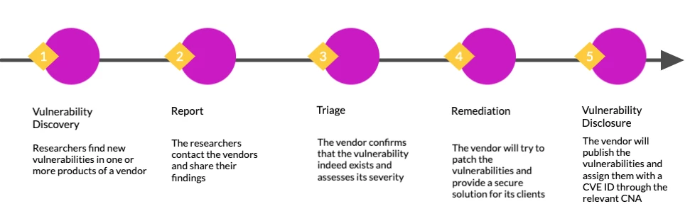 Coordinated vulnerability disclosure from discovery to disclosure.