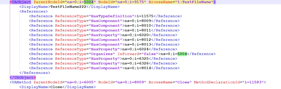 Creating a FileDirectory object in namespace 0: Namespace 0 is the default root namespace for the OPC server that was created by the OPC Foundation. It should contain all default OPC UA types and the main server object used for server configuration and tracking.