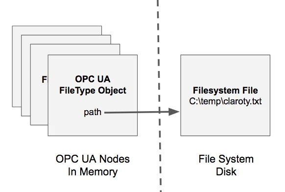 It’s important to distinguish between OPC UA FileType/FileDirectory objects in memory to the actual files/directories they point to on the disk. For example, we can create a FileType OPC UA object that will live in memory as part of the OPC UA nodes, but it will not point to an actual file on the disk. Essentially, it’s just an object and a potential interface to control a file on the disk.