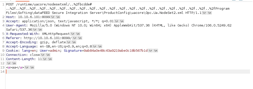 #5: CVE-2023-39481: Arbitrary file write using /runtime/uacore/nodesetxml