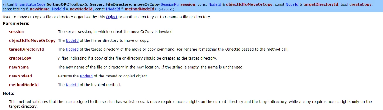 • FileDirectory objects usually require that the link between the OPC UA object and the filesystem path would be done by the server code. This means the server using the Softing SDK needs to implement the connection “hard-coded” in their code.